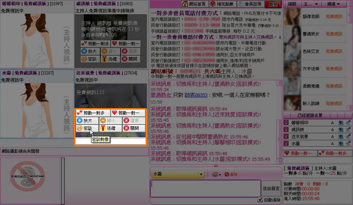 (提示:若您以非會員登入要同時跟四位主持人一對多聊天,您必需準備四支電話撥打。所以建議您可以加入會員,購買點數後以會員身份登入,即可直接扣點而母需撥打四支電話付費)