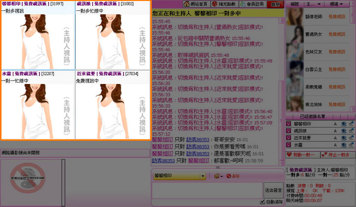 當您可能在跟某主持人免費視訊或是免費聊天的時候,由於主持人被別人邀請付費的一對多視訊或一對一視訊,即會出現下列畫面。